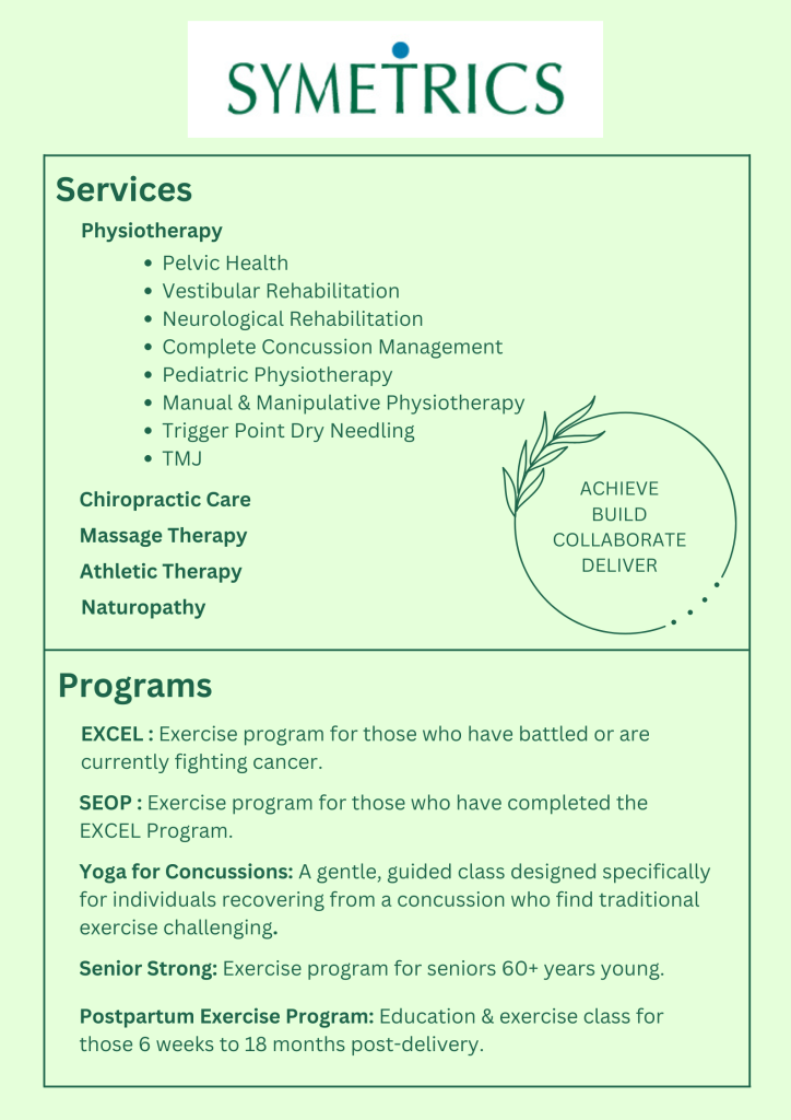 SYMETRICS is looking to hire a Registered Physiotherapist (Orthopedic) & Registered Pelvic Physiotherapist!